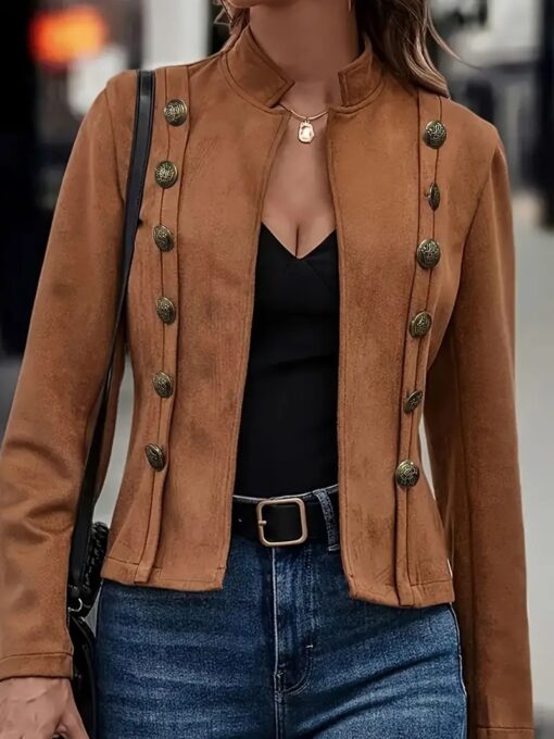 ✔ Vintage-inspired design – double-breasted with elegant button details